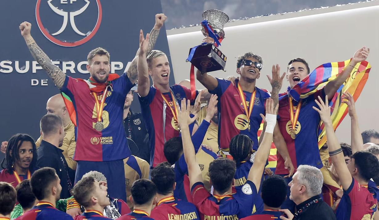 巴塞罗那5-2击败皇家马德里获得西超杯冠军,据《阿斯报》透露,在回程航班上,拉波尔塔借着当时的兴奋之情,承诺将给巴萨全队额外的奖金,球员们对此送上了热烈的掌声。