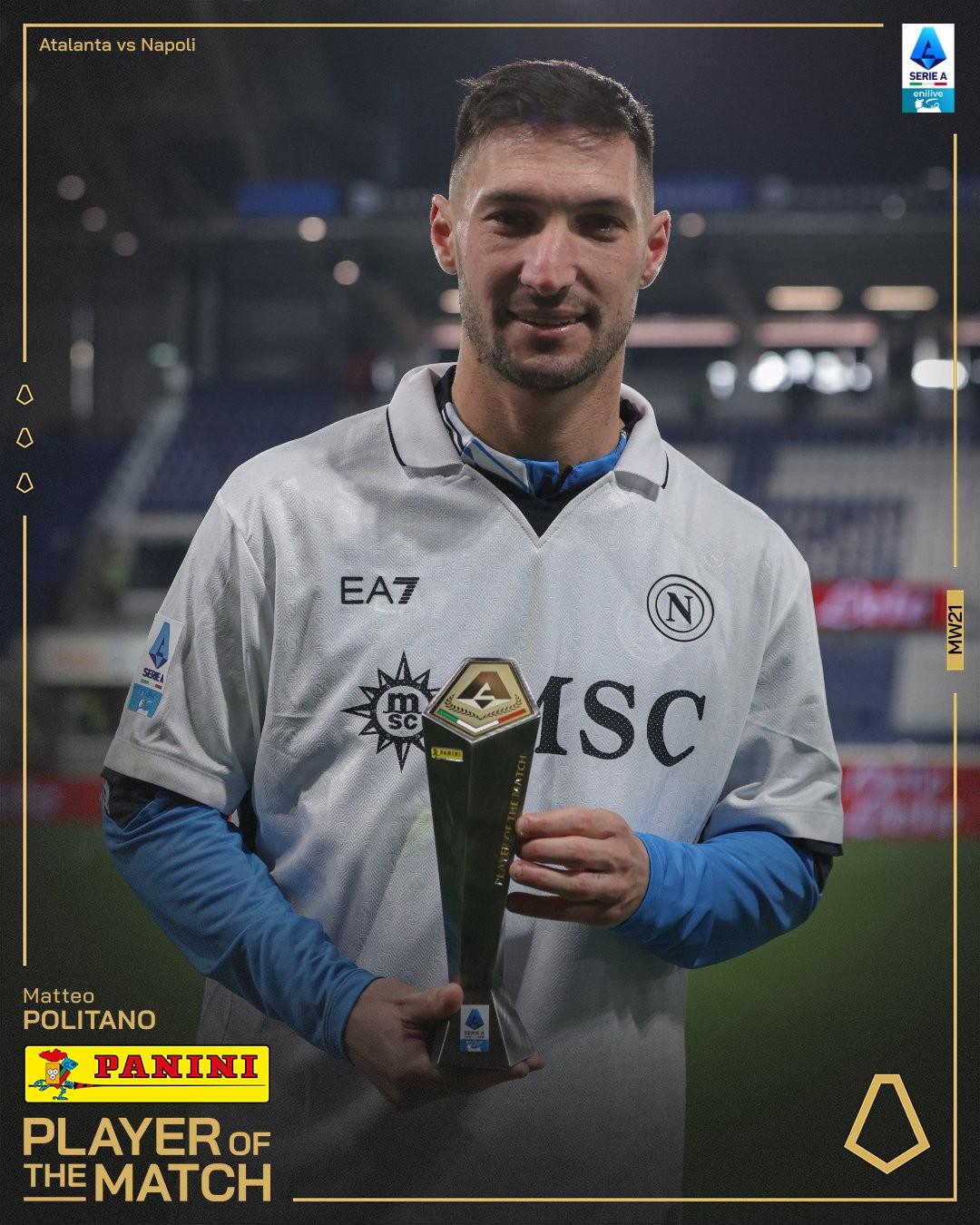 官方消息,波利塔诺当选亚特兰大对阵那不勒斯一役全场最佳。