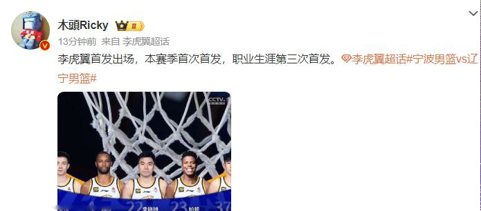 李虎翼首发出场,本赛季首次首发,职业生涯第三次首发。