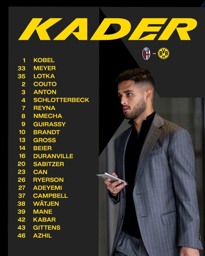 北京时间1月22日凌晨4点,多特将迎来联赛阶段第7轮客场对阵博洛尼亚的比赛,赛前,多特官方公布了球队的大名单。