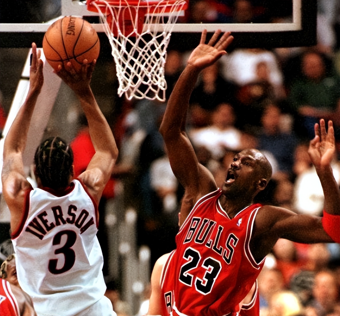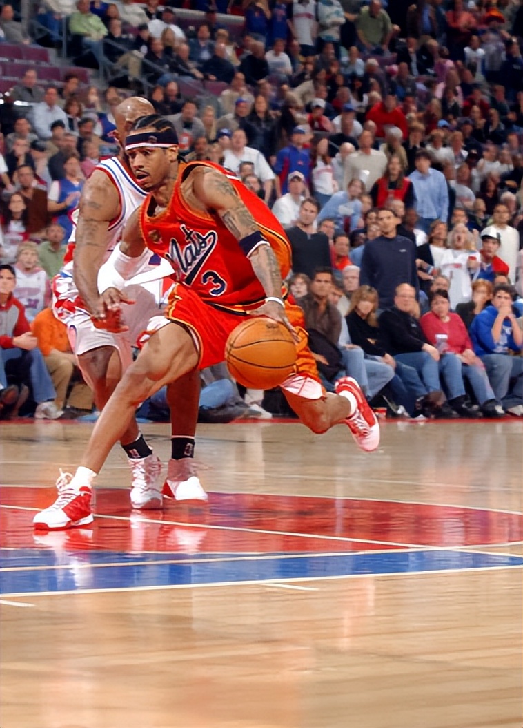 艾弗森确实是技术流代表,很多人就因此忽略了他的运动天赋。艾弗森弹跳很好,他想要扣篮,真得很轻松。他这次补扣,直接是在骑着对方中锋坎比完成,目测这一条有1米1左右高度,这弹跳比科比都夸张。