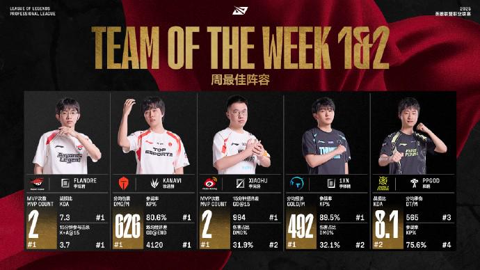 英雄联盟2025LPL第一赛段常规赛正在火热进行中,今日英雄联盟赛事公布了第一、第二周最佳阵容。