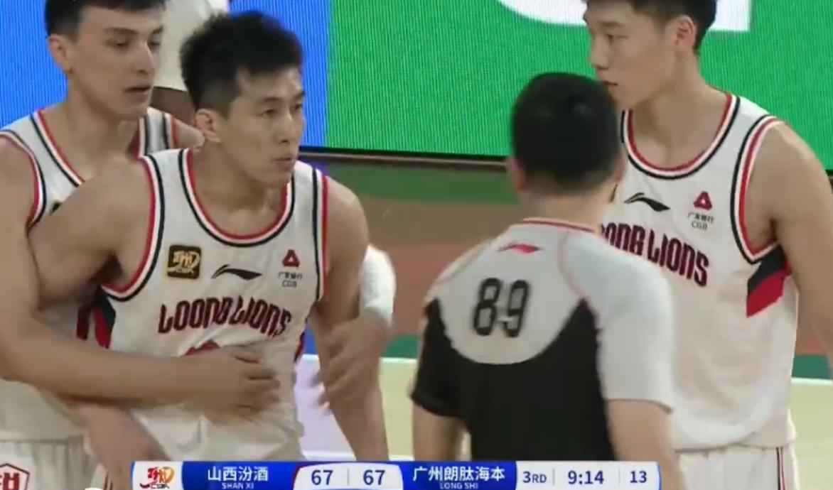 第三节郭艾伦很不满裁判给前场球,他喷裁判险些吃T,广州立马把他换下。