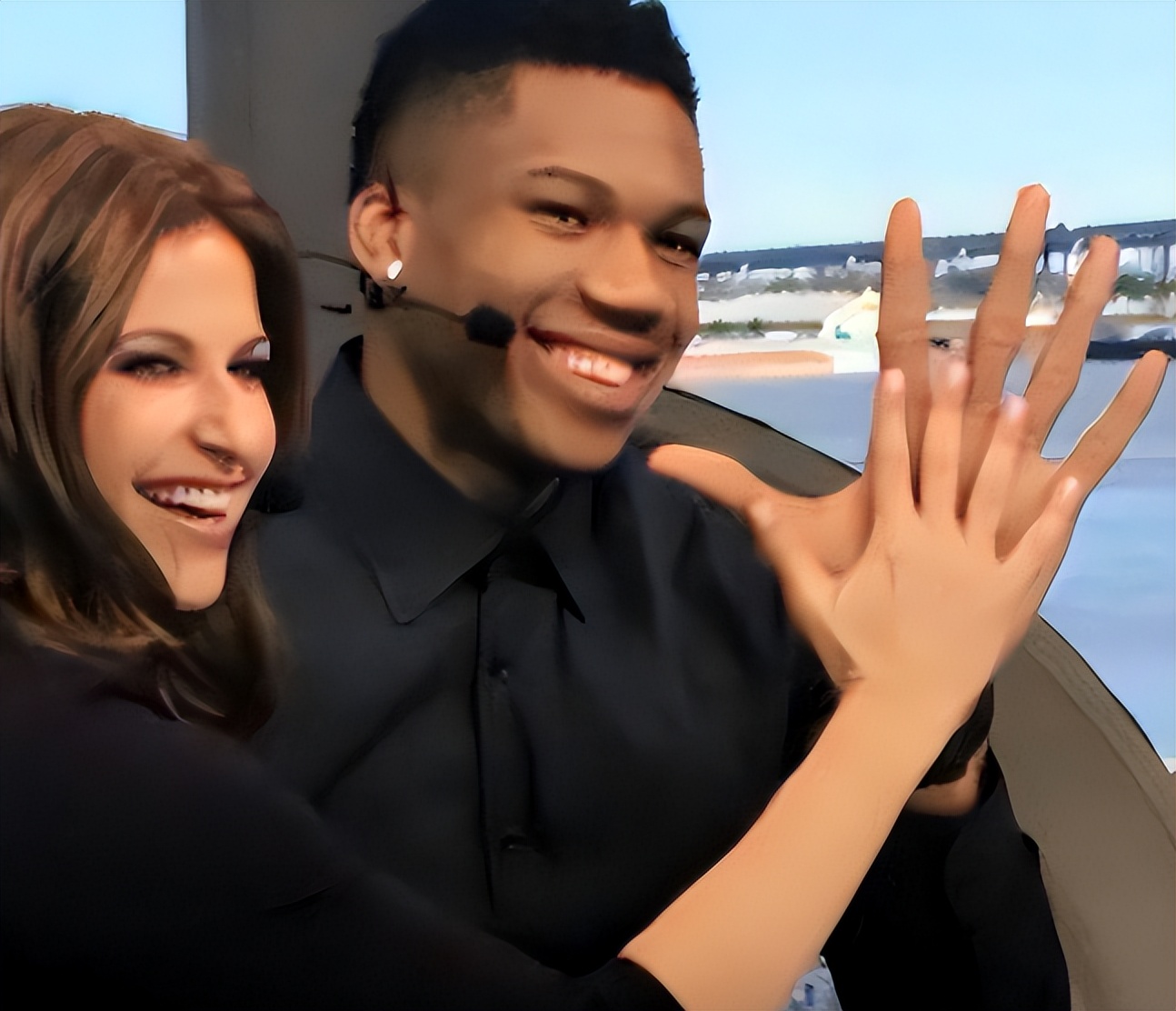 字母哥能实现逆袭,真不是技术层面提升有多大,主要还是身体天赋太夸张。他就是“蜘蛛人”身材,腿长,臂展长,身材比例太好。他的一双大手,也是让人印象深刻,篮球在他手里,感觉都像是小了一号。这次跟女主持人比较手掌大小,字母哥手掌完全打开,感觉比主持人手掌大了整整一倍。