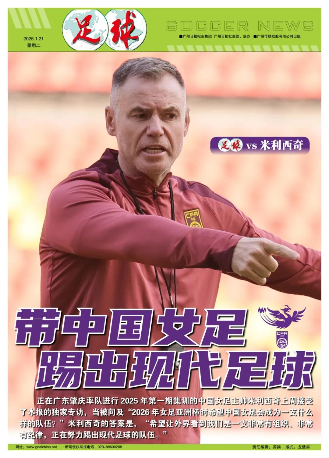 记者王伟报道 1月7日至24日,中国女足在广东肇庆进行2025年第一期集训。1月17日上午9点半,中国女足主教练、澳大利亚人米利西奇在下榻的酒店接受了本报专访。