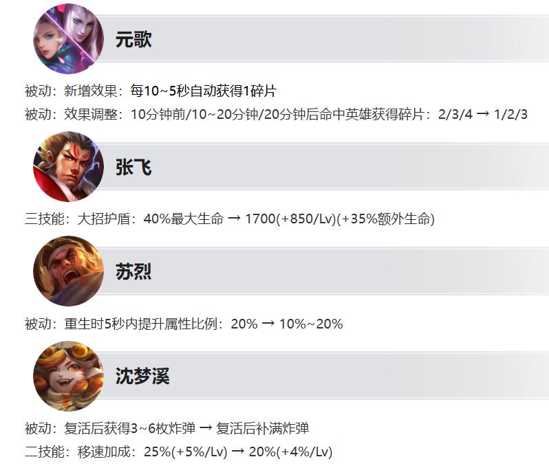 张飞削弱: 大招护盾改为额外生命加成, 护盾变薄。