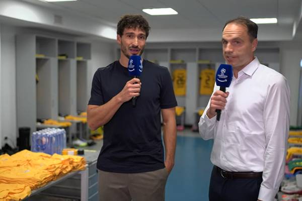 北京时间9月17日,欧冠联赛阶段第一轮,尤文图斯4-4多特蒙德。在本场比赛中,胡梅尔斯开始了他作为电视评论员的新篇章。