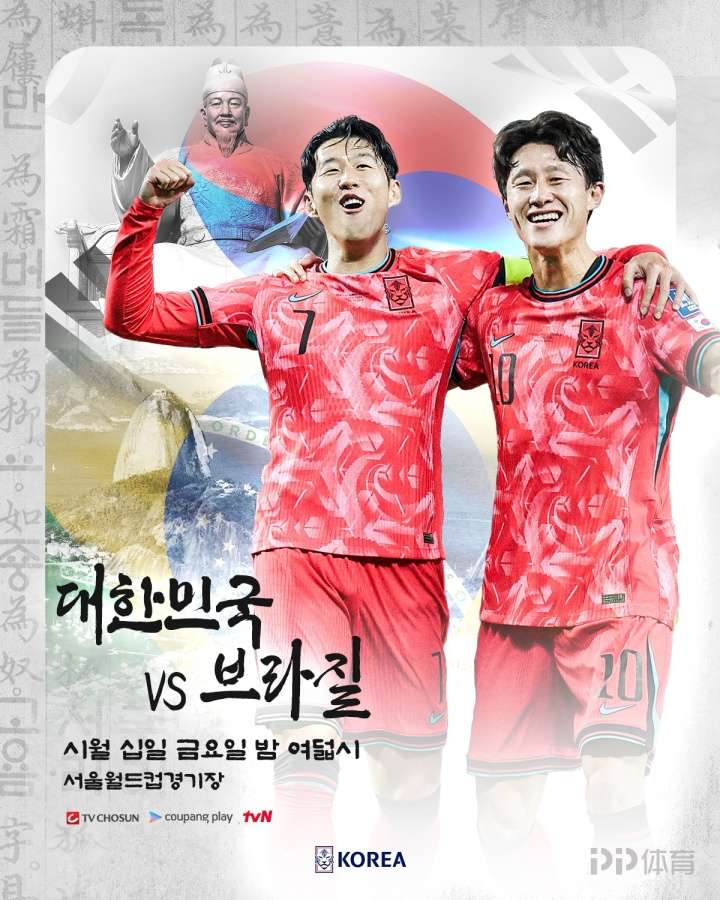 北京时间19点,国际友谊赛,韩国主场迎战巴西,赛前双方公布首发。孙兴慜、李刚仁、维尼修斯、罗德里戈、埃斯特旺等出战。