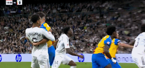 第44分钟,巴尔韦德助攻,贝林厄姆兜射入死角,皇马3-0