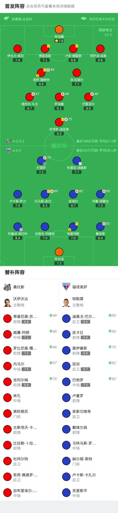 第35分钟,福塔莱萨球员布雷诺-洛佩斯助攻巴雷罗打入一球。