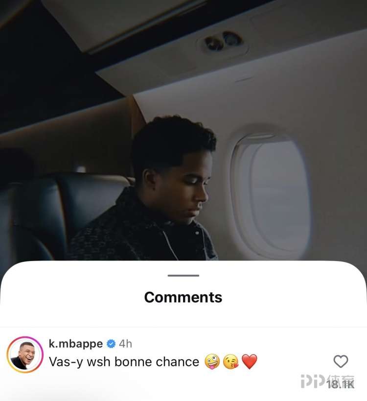 皇马19岁前锋恩德里克租借加盟里昂,姆巴佩在恩德里克的社媒动态下面留言,他写道:“加油,兄弟,祝你好运!”