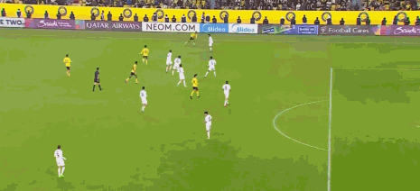 第13分钟,博尔热斯倒三角传球,科曼抢点破门,利雅得胜利1-0