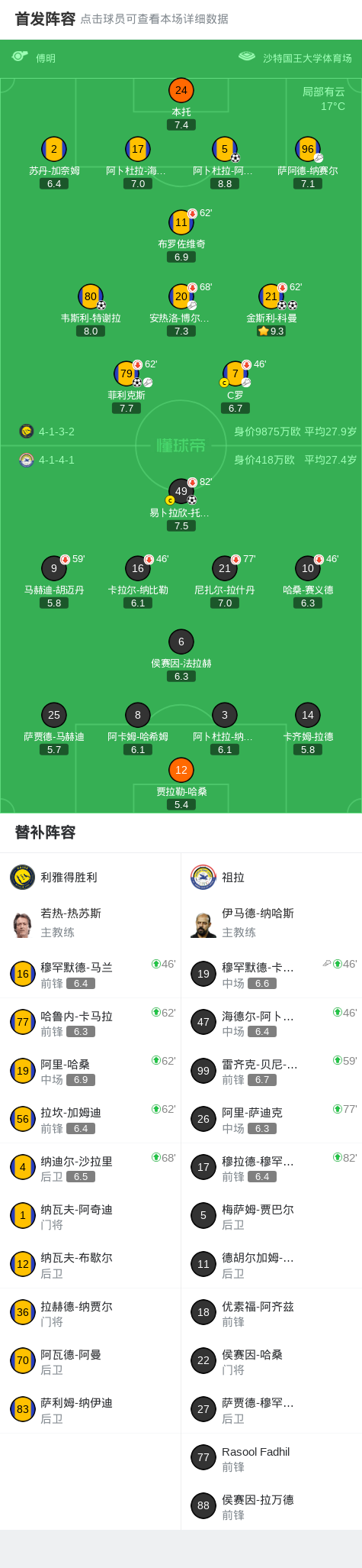 第46分钟,胜利下半场一开始便换人,C罗被马兰换下