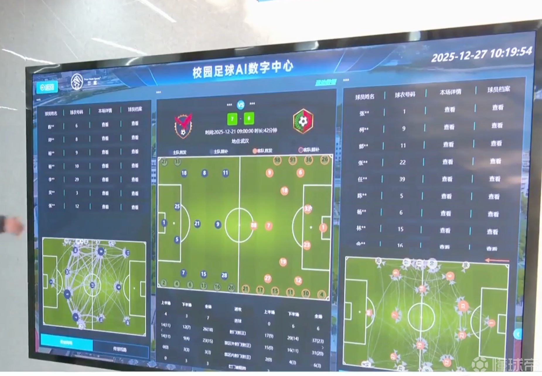 武汉体育学院足球学院院长王云涛表示, 练多了以后你脚下有感觉了,我们运用 数据采集来分析他的不足之处, 提高他的观察、预判和决策能力。除了“智慧球场”,实验室更大的本领在于“读懂”球员。通过场内多台高速摄像机和可穿戴设备,系统能实时捕捉并记录下球员的跑动距离、速度、心率、运动热点等全方位数据。