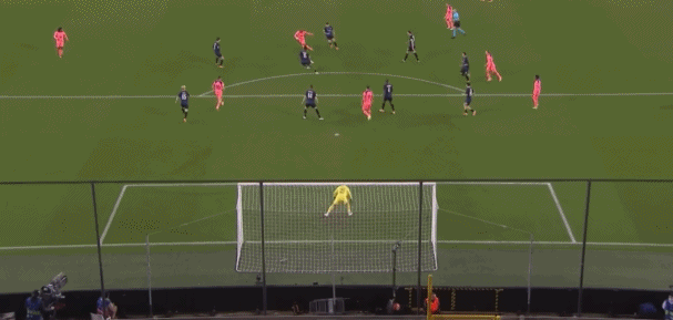 马赛主场逆转战胜纽卡斯尔比赛中,下半场开始,奥巴梅扬接队友直塞,快速启动后过掉出击的门将,果断打小角度得手。