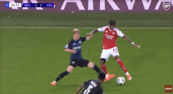 阿森纳客场完胜布鲁日比赛中,“棍儿哥”马杜埃凯上演强突单打,单兵突进后轰出超级世界波破门。