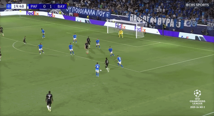 拜仁慕尼黑客场大胜帕福斯的比赛中,拜仁众将禁区内打出连续一脚撞墙配合,格雷罗完成最后的致命一击。