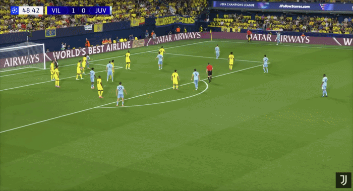 尤文图斯客场战平比利亚雷亚尔比赛中,尤文后卫加蒂在一次角球进攻中,精彩倒钩破门。