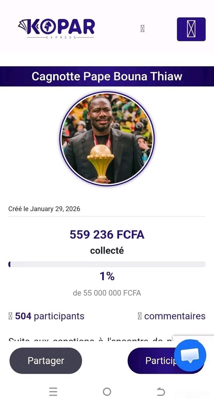 塞内加尔主帅蒂奥因"违反体育道德行为"被禁赛五场并罚款7.2万英镑——他在非洲杯决赛中曾指示球员离场,塞内加尔球迷得知此事后,开启众筹为其支付罚款。
