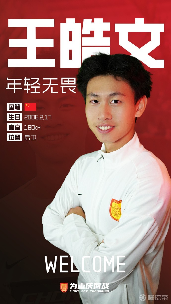 俱乐部相信,王皓文的加盟将进一步充实球队的年轻阵容,为防线注入新的活力。期待他能快速融入球队,以拼搏姿态诠释 “坚韧、忠勇、开放、争先” 的重庆城市精神,与全队一同为重庆足球的荣耀而战
