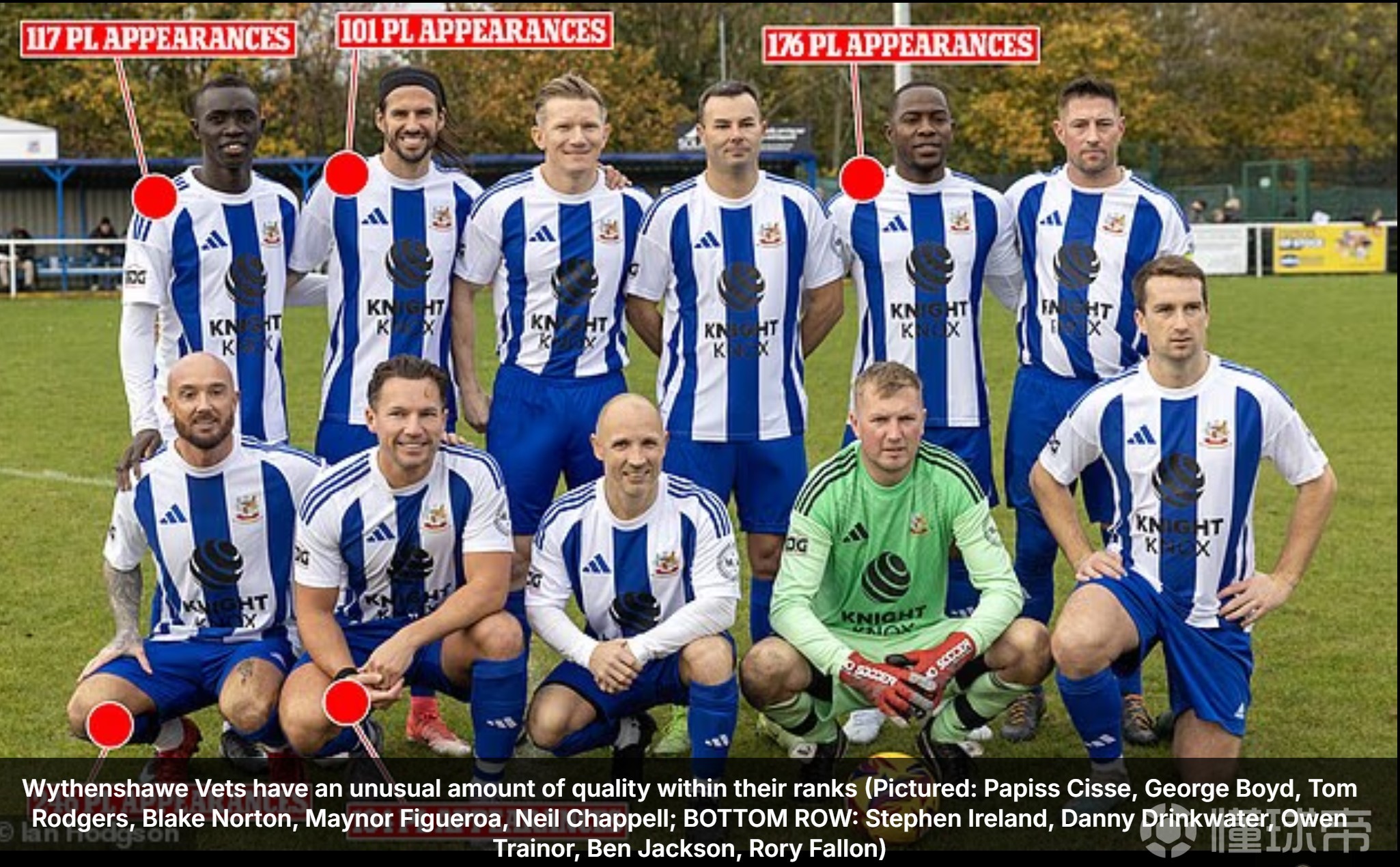 前曼城球星斯蒂芬-爱尔兰、曾效力切尔西和莱斯特城的中场丹尼-德林克沃特,以及昔日纽卡斯尔联锋线英雄帕皮斯-西塞,只是这支第九级别联赛球队中经常登场的一部分大牌球员。