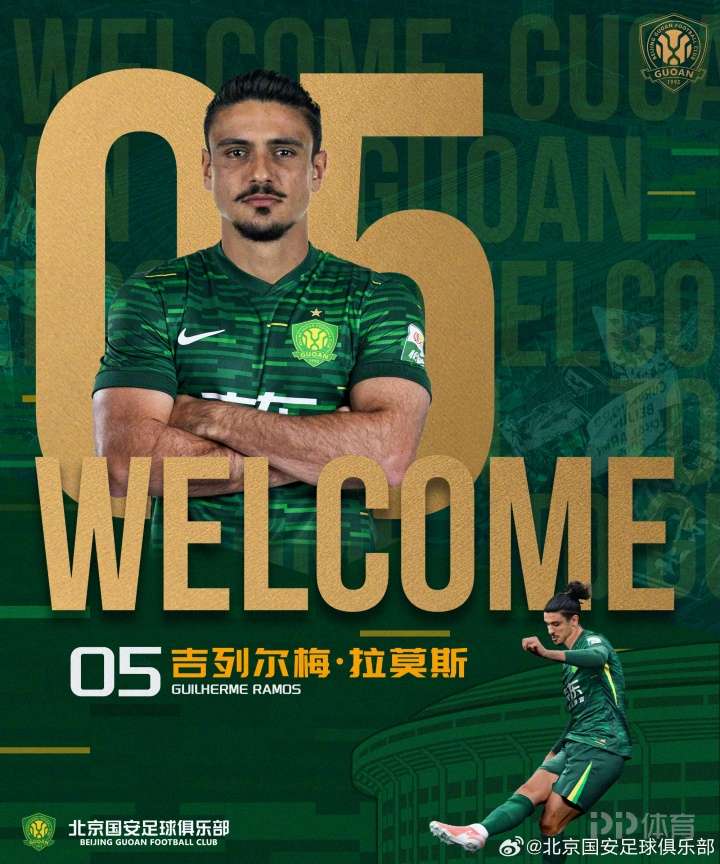 官方消息,北京国安签下汉堡28岁后卫吉列尔梅·拉莫斯。
