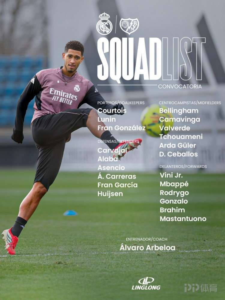北京时间2月1日21:00,2025-26赛季西甲联赛第22轮,皇马将坐镇伯纳乌球场迎战巴列卡诺。今日,皇马公布本场比赛球队大名单,尽管吕迪格和阿诺德已参加合练,但仍未进入名单。