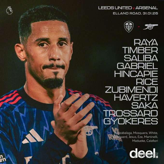 北京时间今晚23点,英超第24轮,阿森纳客场对阵利兹联,赛前双方公布首发阵容。