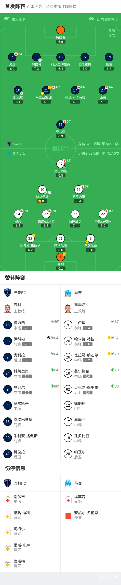 第53分钟,格林伍德送助攻,奥巴梅扬轻松破门,马赛2-0巴黎FC
