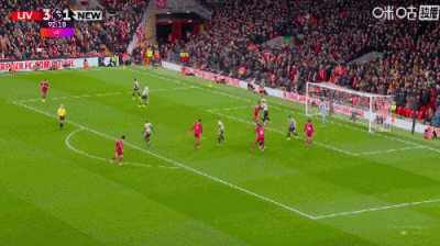 第90+3分钟,波普扑球脱手,科纳特补射破门,利物浦4-1纽卡