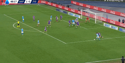 第11分钟,韦尔加拉高速推进,随后单刀轻松破门,那不勒斯1-0领先