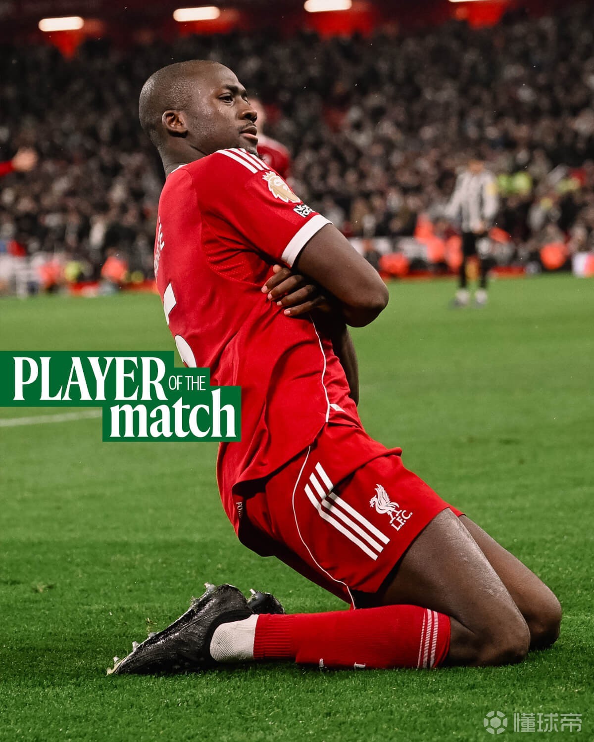 利物浦官方宣布,科纳特当选球队与纽卡斯尔联一役队内最佳球员。