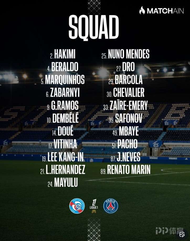 本轮法甲巴黎将对阵斯特拉斯堡,球队官方也公布了本场大名单,新援德罗在列,克瓦拉茨赫利亚缺战。
