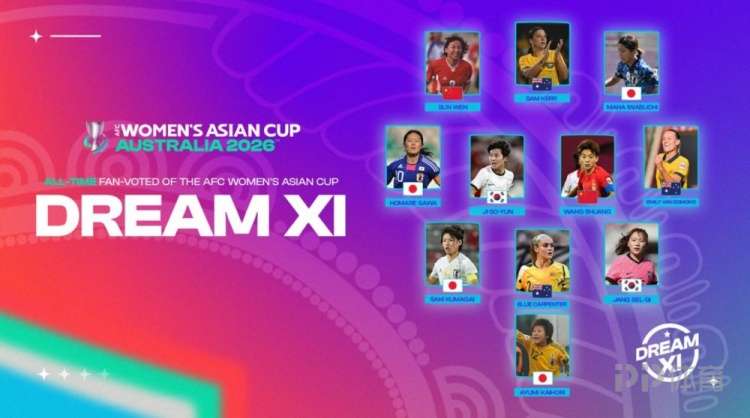 亚足联官网公布球迷票选女足亚洲杯梦幻11人阵容,中国球员孙雯、王霜在列,日本队4人最多。
